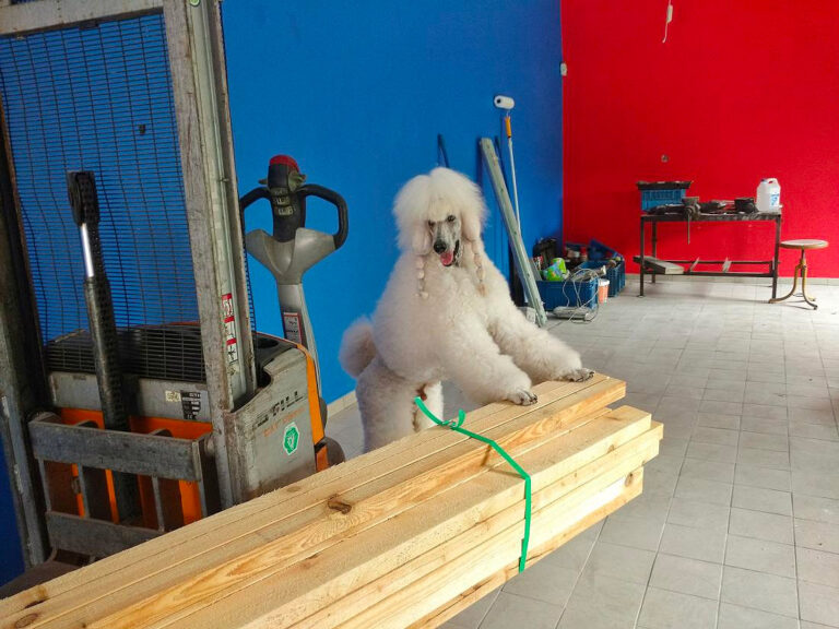 W Przyjaciel Pudel Centrum trwają prace wykończeniowe. Nasze psy Sojer i Dżejkob skorzystali już z drzemki w swoich nowych budach. Brakuje jeszcze zasłonek w wejściach gwarantujących im intymność podczas odpoczynku oraz ciepłej i miękkiej podłogi. Wszystko to już wkrótce.